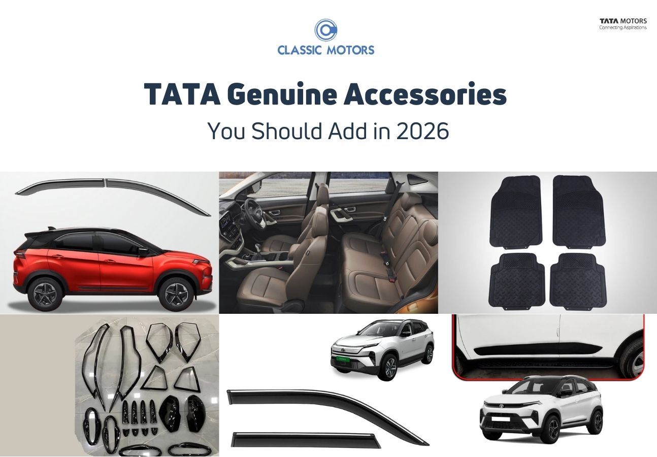 Explore the best TATA genuine accessories for 2026 - interior, exterior, safety, and car-care upgrades. Enhance comfort and performance with Classic Motors guidance.