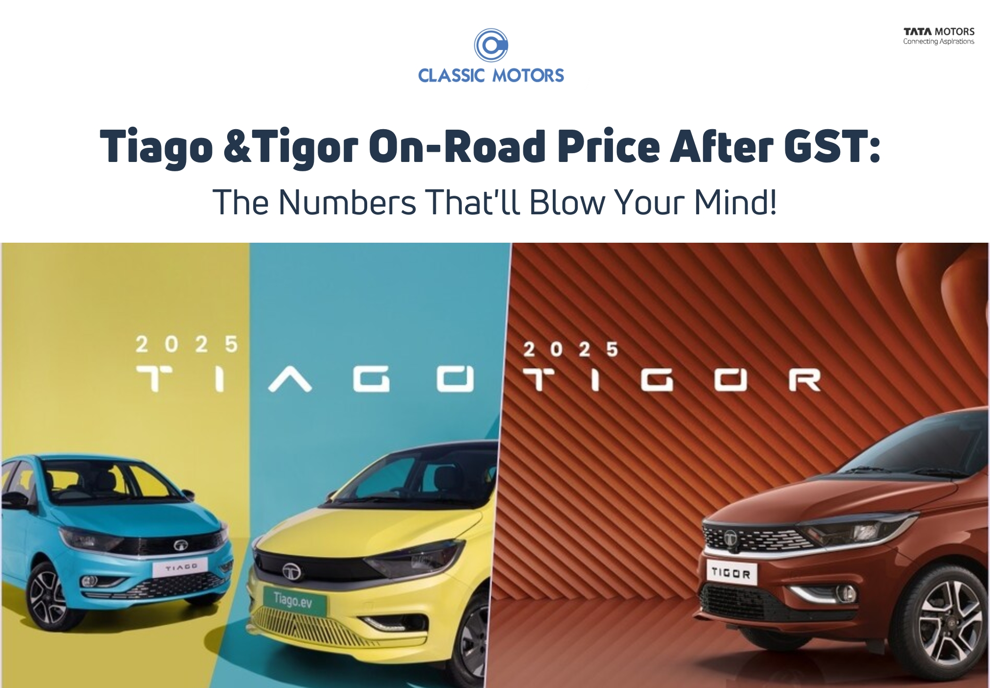 Discover new TATA Tiago & Tigor on-road prices after GST 2.0. Enjoy up to ₹81,000 savings at Classic Motors Alwar & Bhiwadi. Book your TATA today!